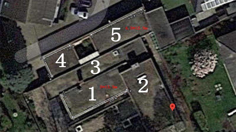Sur la base des photos et de la carte satellite fournies par le client, nous avons confirmé qu'il existe 5 emplacements d'installation pouvant être utilisés sur le toit.