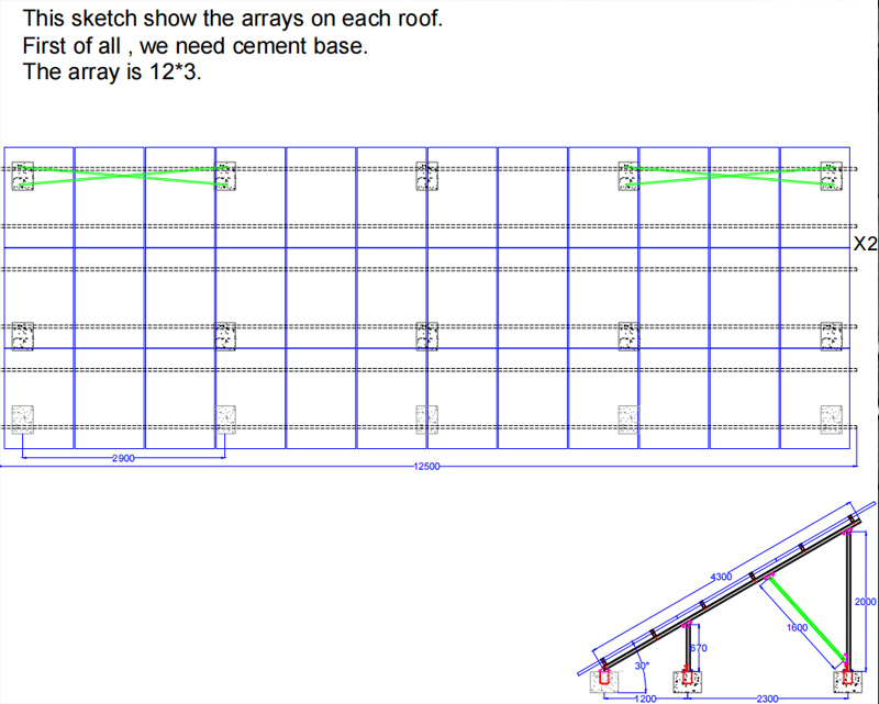 Reportez-vous aux documents du client, la zone d'installation est un toit plat en ciment, dont la capacité de charge est normalement de 30 kg/m2.