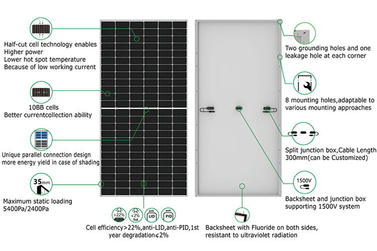 Panneau solaire monobloc MBB 580 W, demi-cellule, d'origine chinoiseSuivant :